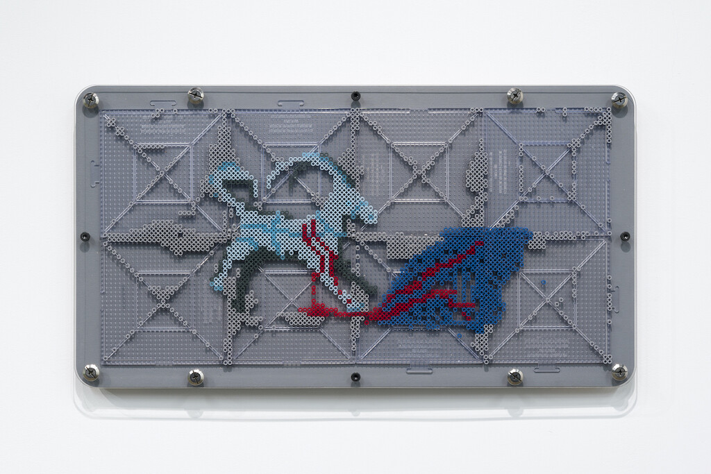 1938 REV. 4 (detail), 2021, Melty beads, wood, acrylic plastic, interior house paint, hardware, 42.25 x 7.75 x 1.75 in.