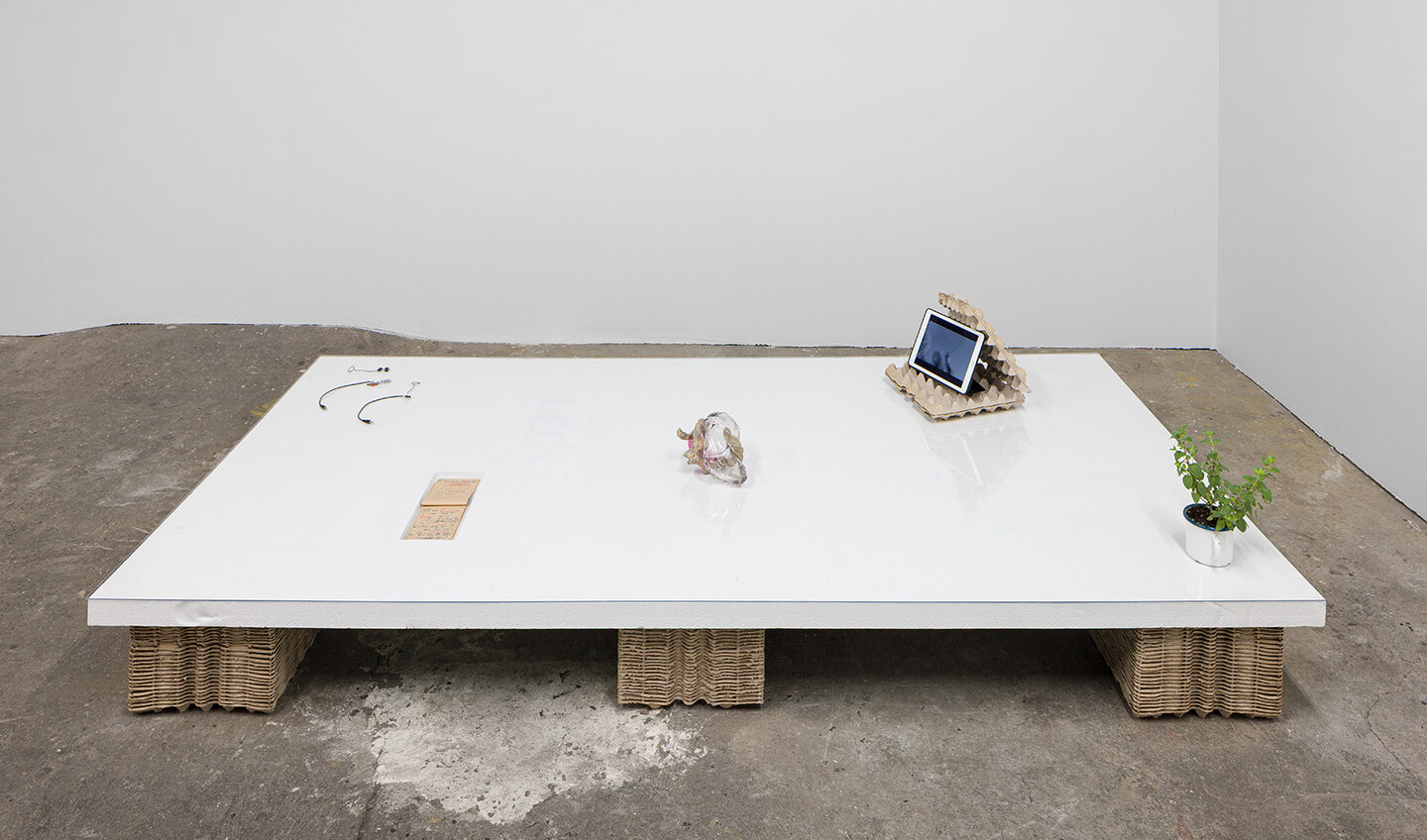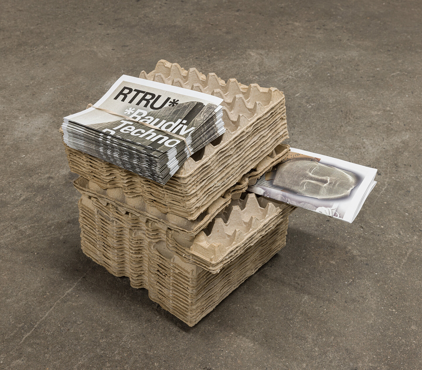 RTRU* engages with both Raudive and his material to be re-examined rather than resolved. Egg-carton acoustic structures shape the exhibition’s architecture, recalling improvised recording studios. Within this environment, the project leaves open whether Raudive should be understood as the inventor of a new perceptual apparatus or as a subject overtaken by auditory hallucination. If trauma marks a rupture in symbolic continuity, the recording apparatus appears as a prosthetic attempt to capture and stabilize what returns in distorted form. The exhibition therefore unfolds less as a linear narrative than as an exploded diagram in which voices, devices, testimonies, artworks, and documents are set into relation without being fully resolved. In this context, Raudive’s tape recorder operates both as instrument and reference point, producing fragments of speech whose speakers remain uncertain.