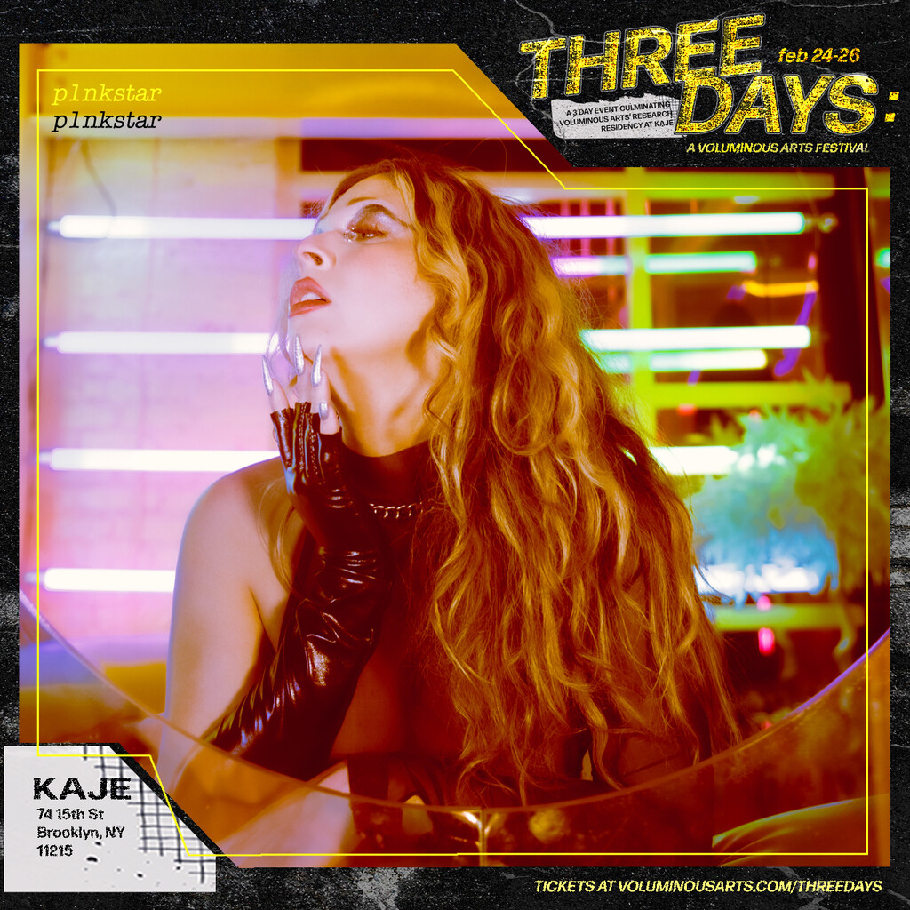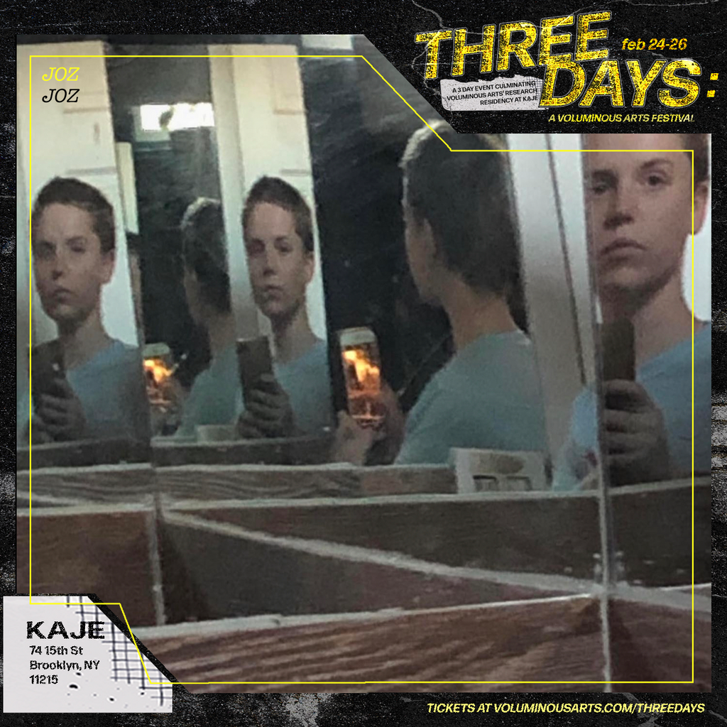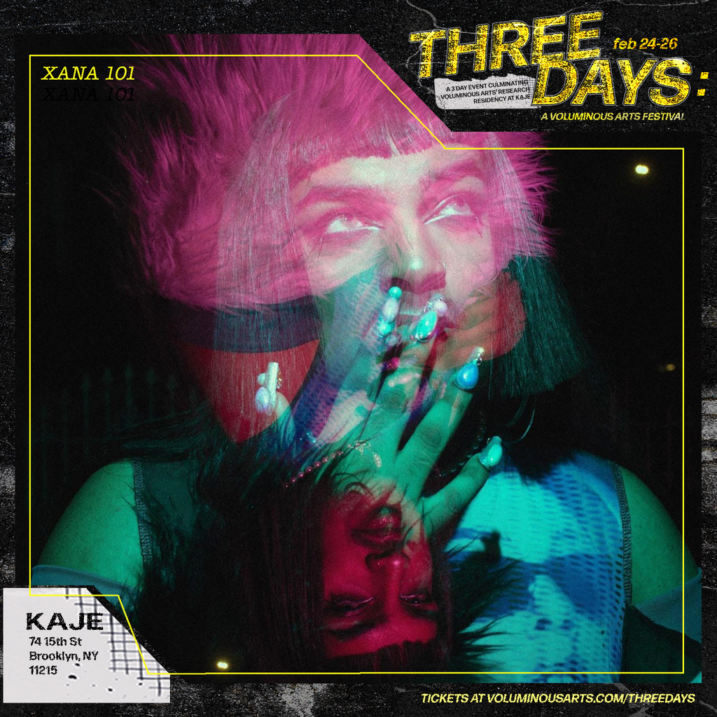 Three Days: A Voluminous Arts Festival was a weekend-long music and arts festival that took place at KAJE from Feb 24-26, 2023 and centered on trans artists experimenting with music and sound. Designed as a multisensorial experience where aural and visual components weaved themselves through communal episodes, the festival was both an exhibition and a celebration. Since most of the research residency’s activities had not been open to the public, this event acted as a showcase of the work developed—while simultaneously being a weekend-long party for the public and the artists involved. Three Days provided a glimpse into the work Voluminous Arts’ artists had developed during their research residency at KAJE from September 2022 to February 2023.