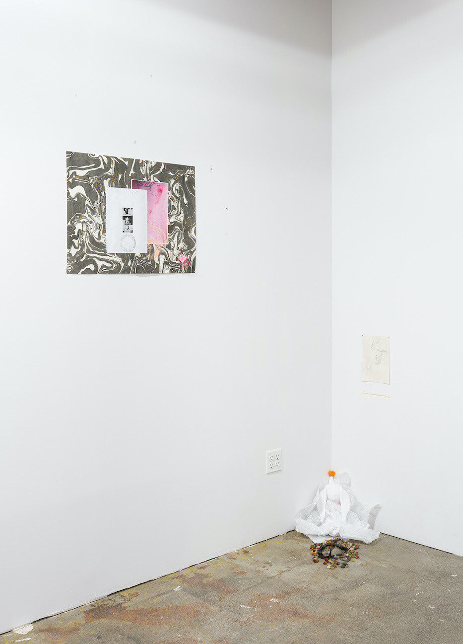 Nobody Puts Baby in a corner (like so!) But otherwise, I'm Lover, I'm ZERO, I Leap Through Time (detail), 2022, Build-A-Bear Online Exclusive Zero plush, tissue paper, found rocks, tea rosebuds, acrylic and graphite on paper, ink-jet print, dimensions variable