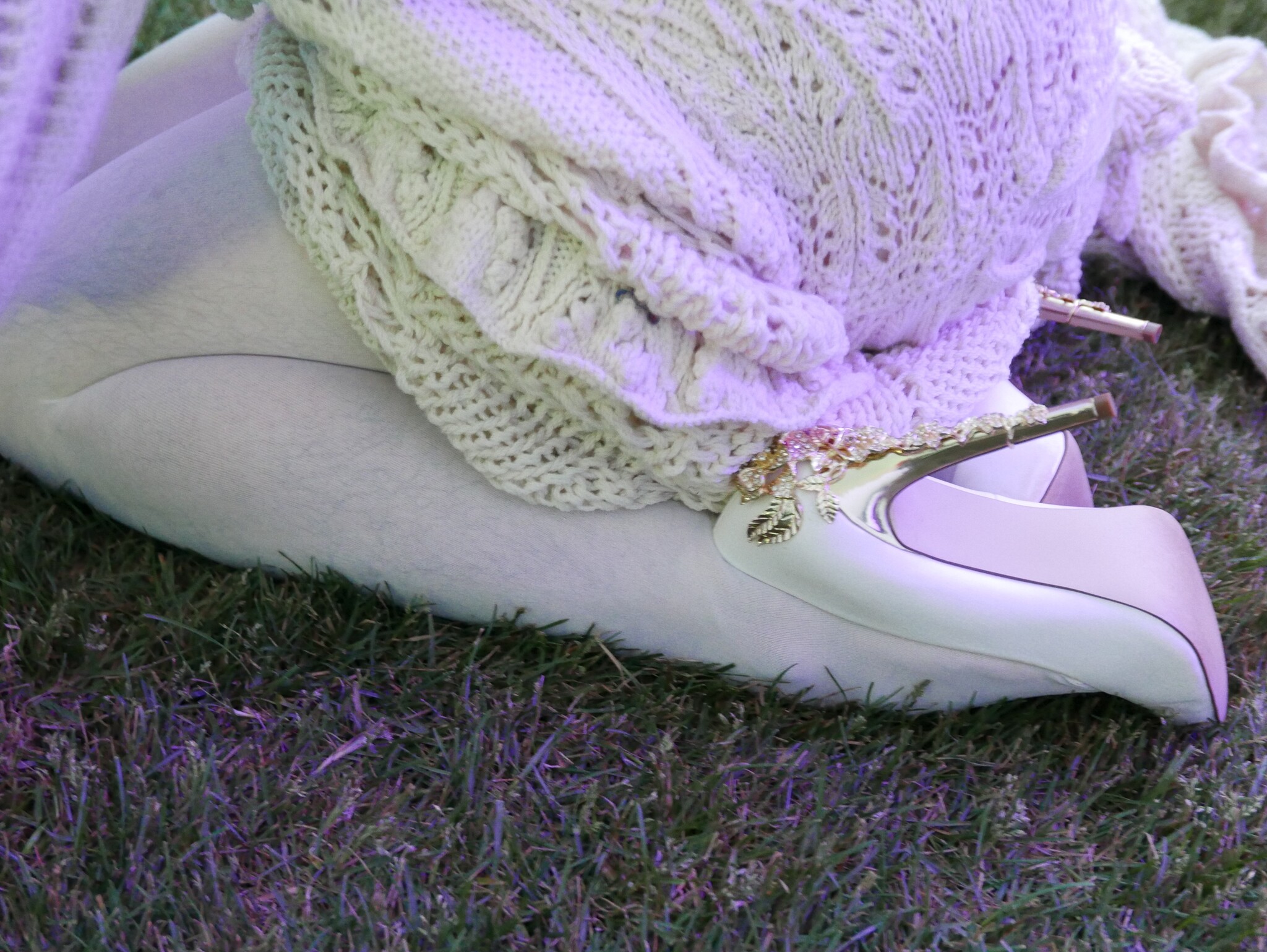 Holy Wooing is Queer Temple, Dance Club. Social Space. Performance. Combining and recontextualizing these modes and environments, Holy Wooling explores gender, identity, and community through the rituals and labor of the queer domestic. Sound installation replaces the artist's voice as physical action and deliberate, calculated articulations emphasize transformations of body into object, commodity into meal, and meadow into monument. The audience is encouraged to mill, conserve, share and observe the artist and themselves undergoing a threshold experience oof entering and participating in an altered queer reality. Hand-knit garments of unbleached white wool act as the framework of transformation throughout the ritual. From skeins of hearsay the artist has woven queerness through histories of religious and physical abuse, engaging a hybridized portrait cultivated from the dominant culture exposed and critiqued. The social construct of masculinity is experienced by far too many mes as a regime of power laboring to invalidate, exclude and extinguish faggotry, effeminacy, and queer community. The performance of "drag" and pseudo-"stiptease" are utilized to combat these toxic modes of masculine expression. Rather than simply removing clothing as in traditional striptease, the process of revealing an "authentic" self is reversed through the act of continuously dressing and redressing, enacting a kind of counter-striptease that does not fetishize the material body but instead mediates the ways in which, through costume and performance, one continuously makes the self. Each piece of the metamorphosing garment displays a different positions within the gay male subcultural spectrum. Through disguise, the sequence itself works as a catalog of the various queer modalities of self-presentation. Holy Wooling will provide the audience with a meal prepared and presented by the artist as an act of intimacy, an invitation to explore the queerness within themselves and each other through the environment. All food will be vegan and organic.