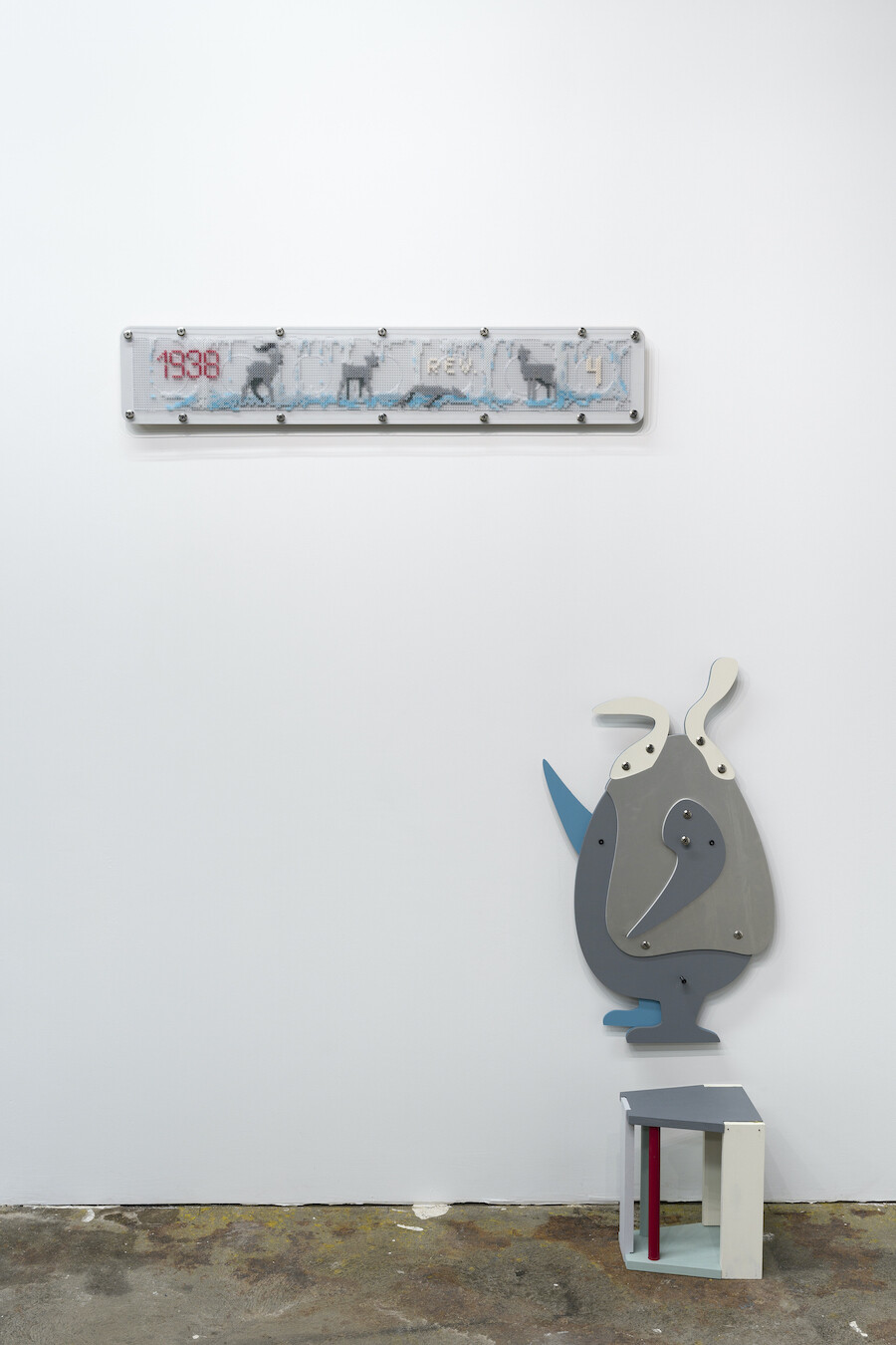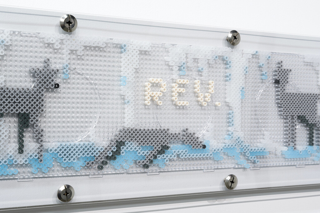 1938 REV. 4 (detail), 2021, Melty beads, wood, acrylic plastic, interior house paint, hardware, 42.25 x 7.75 x 1.75 in.