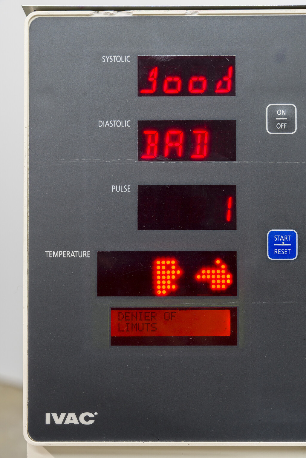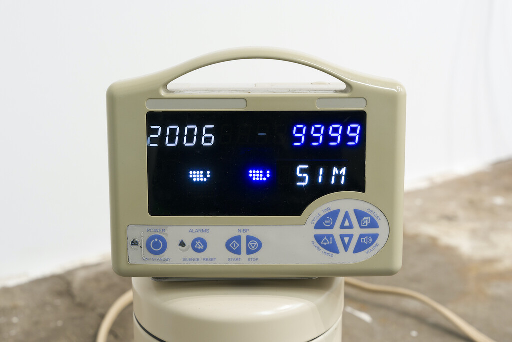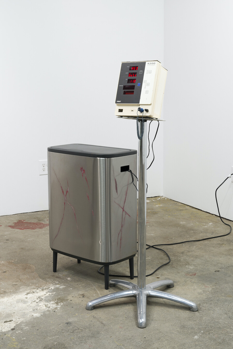 Iron Blue Orphan, 2021, Trash can, patient monitor, electronic