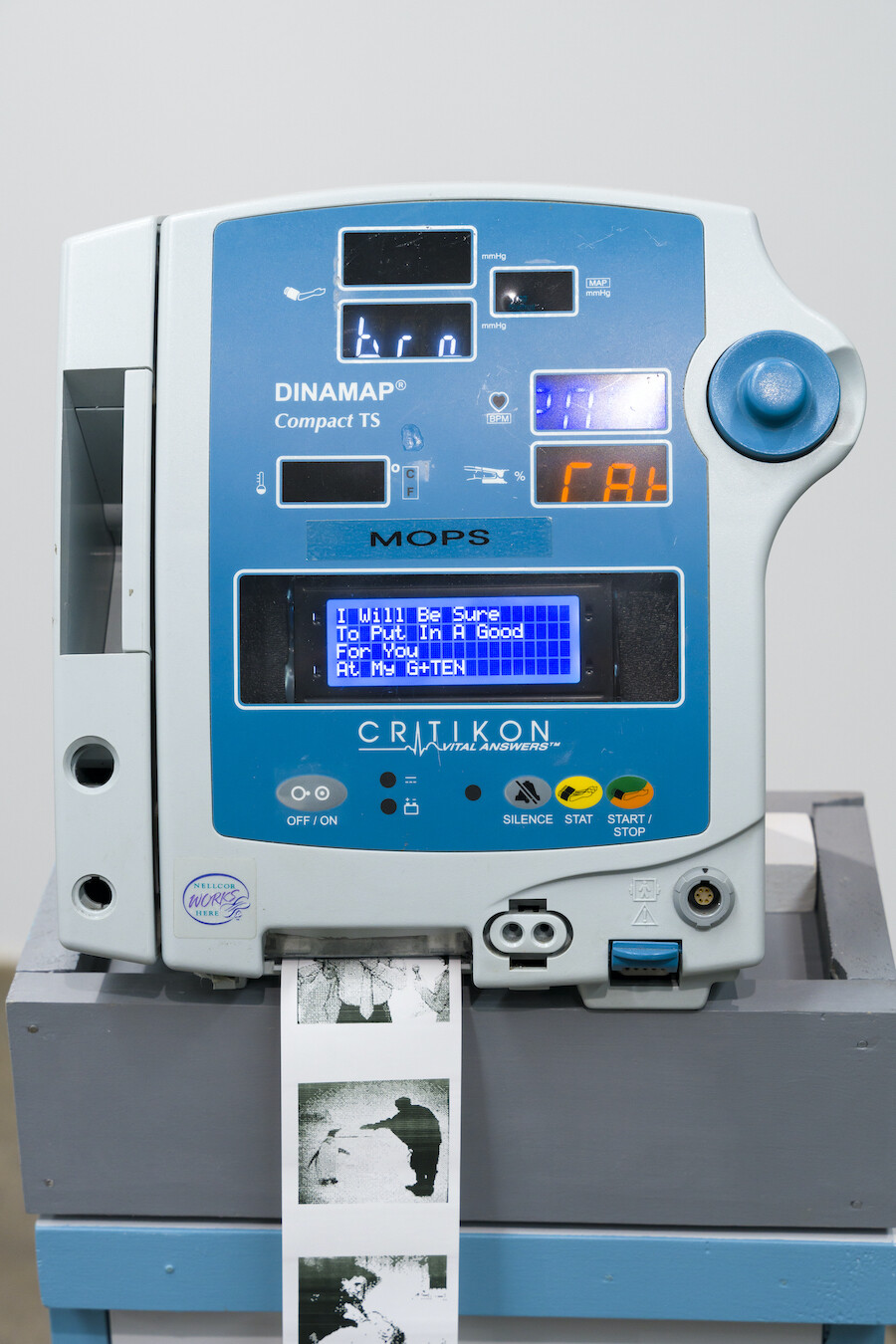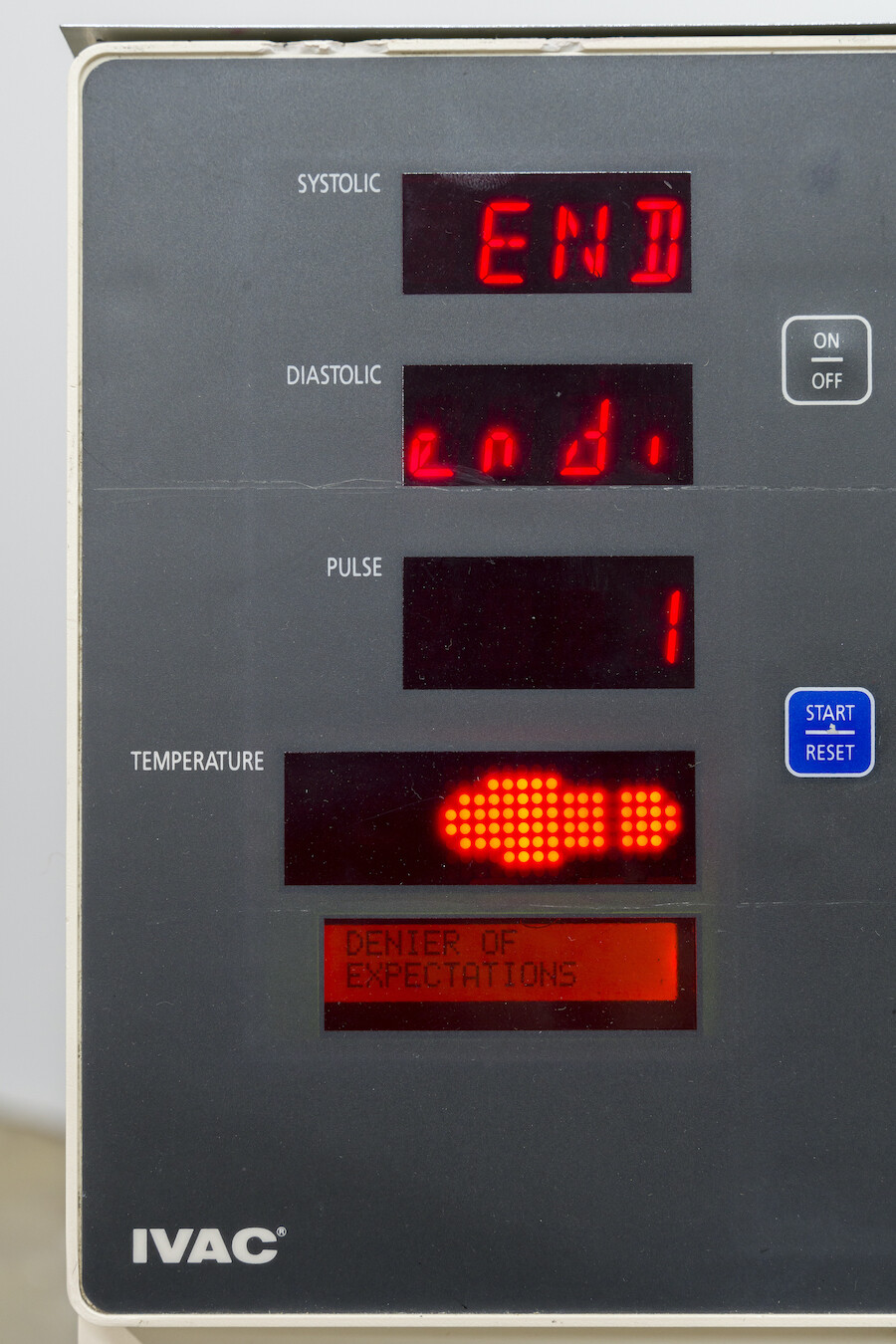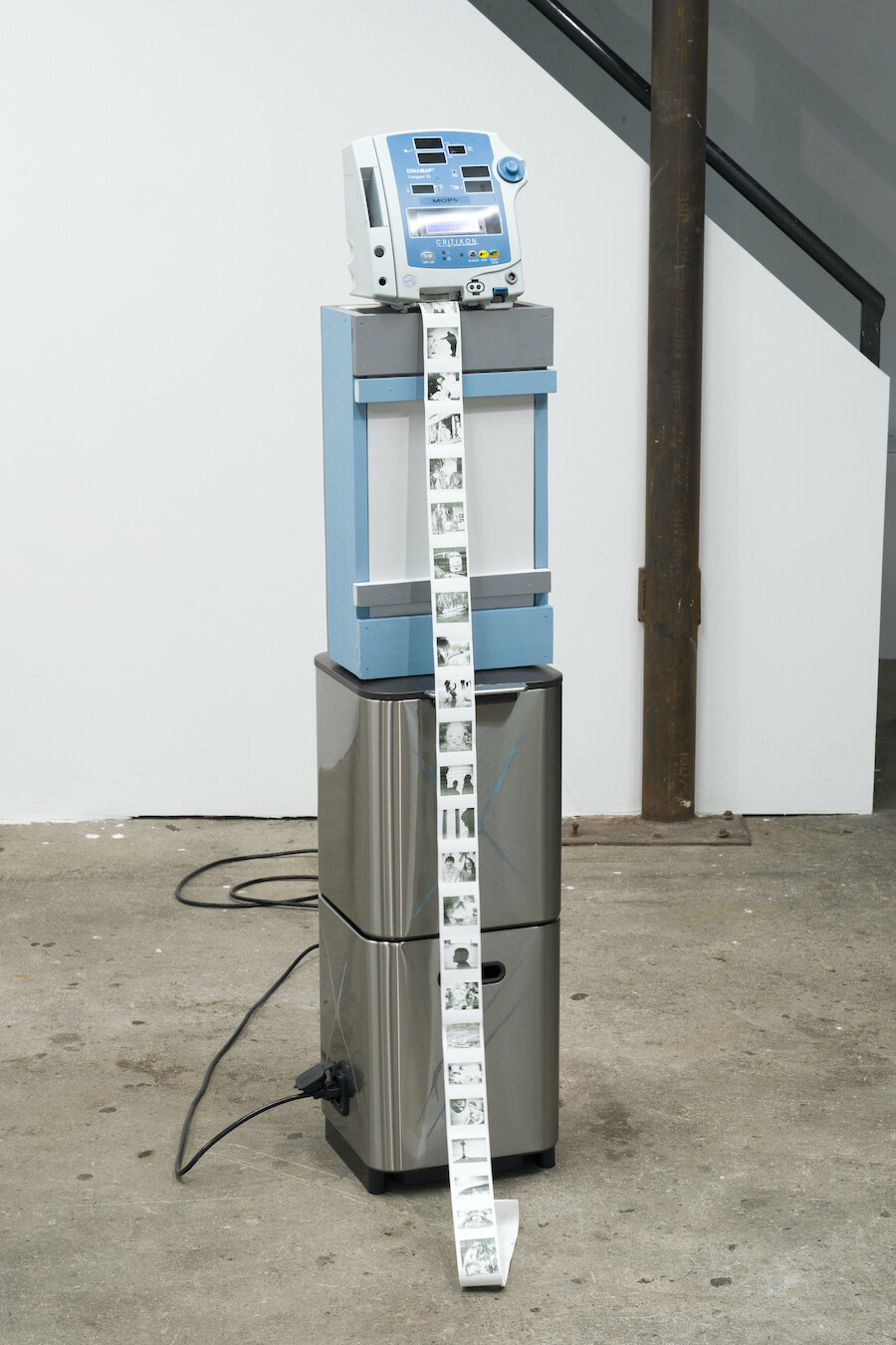 Iron Blue Orphan, 2021, Trash can, patient monitor, electronic