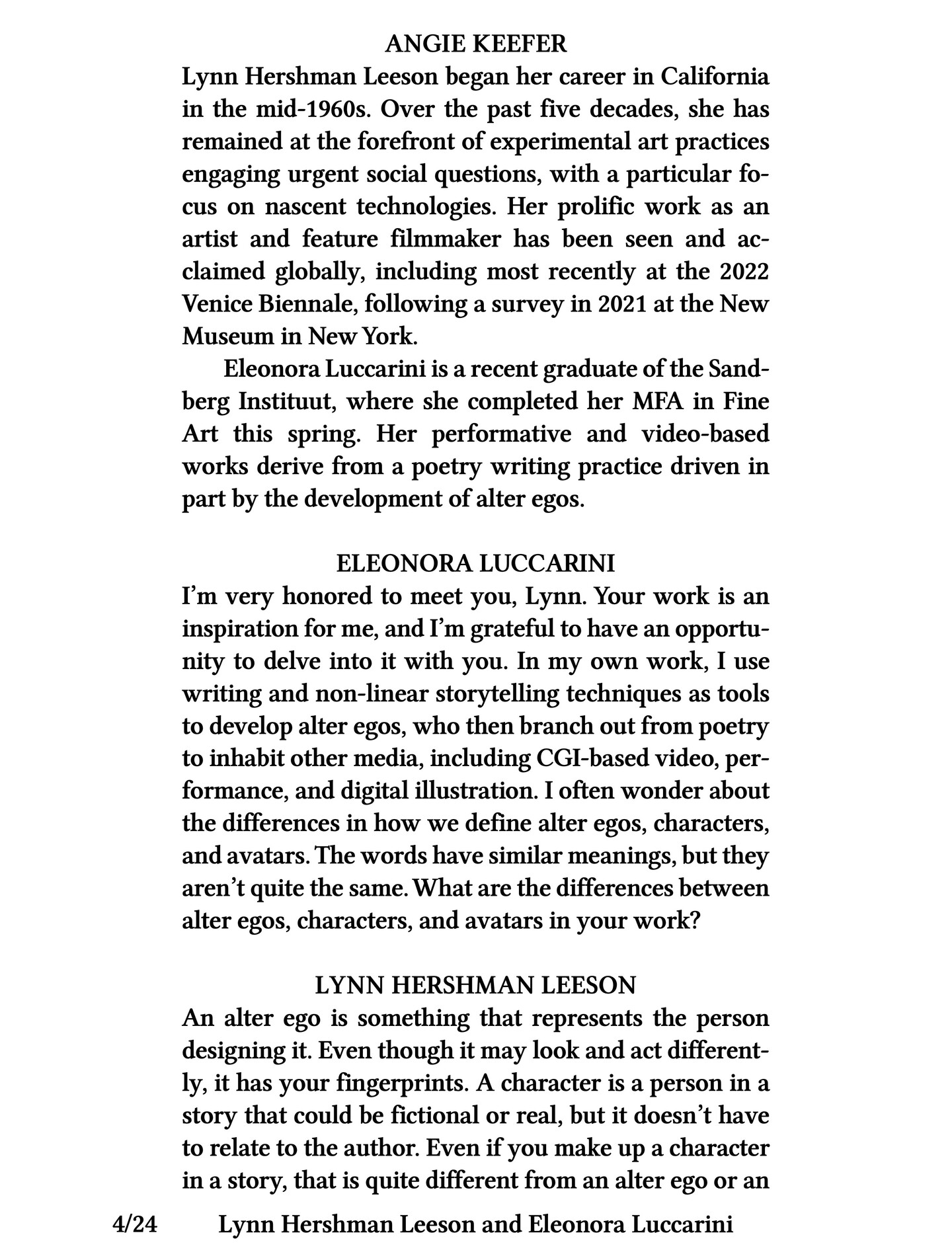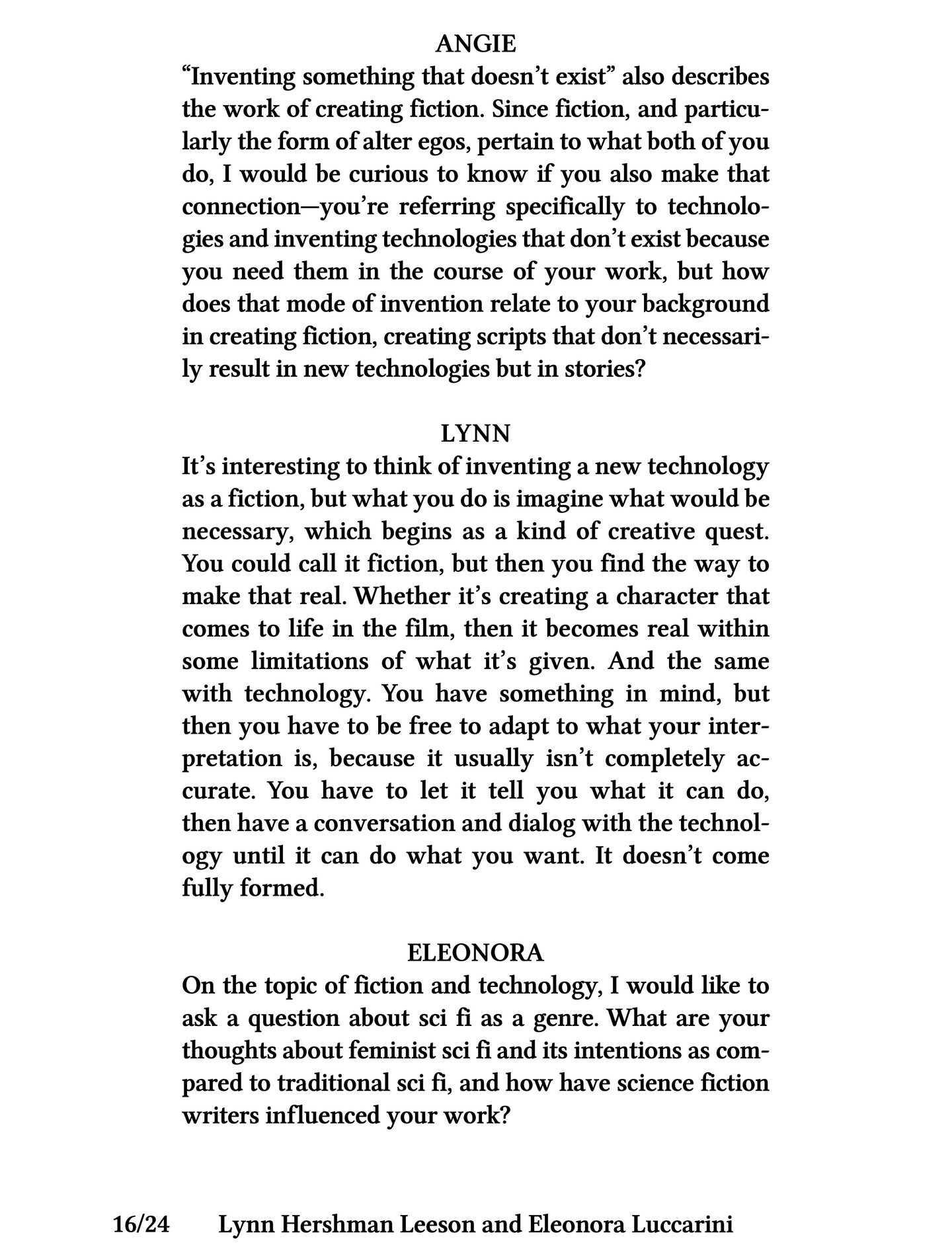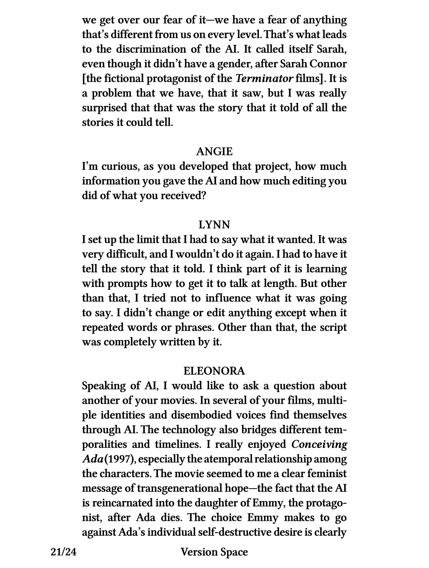 Version Space is a series of pamphlets transcribing conversations among artists and graduate students in visual art regarding Artificial Intelligence and related topics, originally produced in collaboration with Library Stack and funded by the Artistic Research program of the Sandberg Instituut, where I was a research fellow in the Department of Fine Arts for the academic years 2018–19 and 2019–20, with additional support from KAJE, where I was a 2023 Think Tank resident. The conversations take place via videoconference, are recorded, transcribed by an AI, then edited for clarity by humans, including myself and the participants. The series title is borrowed from a machine learning framework conceived in the 1980s as a technique for identifying a range of possibilities in the overlap between maximally general and maximally specific hypotheses.